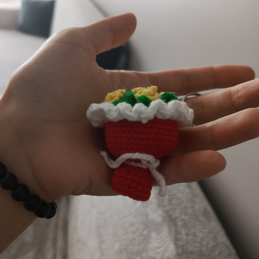 Nakış detaylı, renkli mini fırın eldiveni anahtarlık, taşıma için küçük askıyla birlikte. Dekoratif aksesuar olarak kullanılabilir.