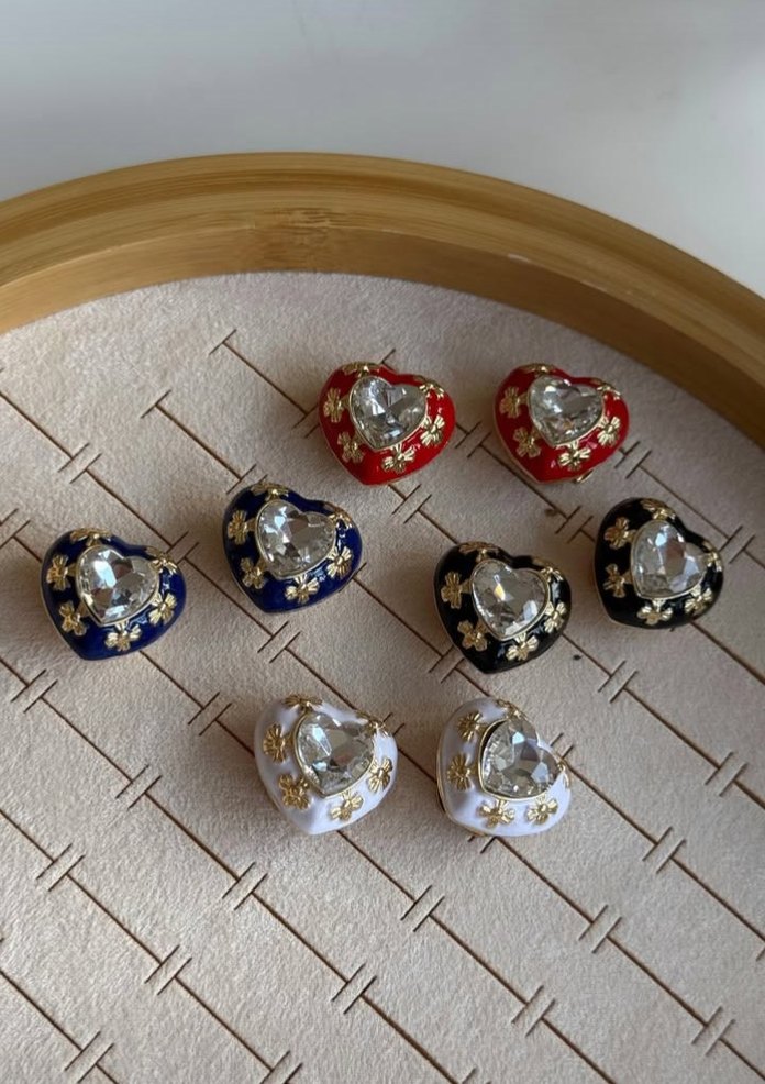 Renkli Nakışlı Mini Kalp Küpeler