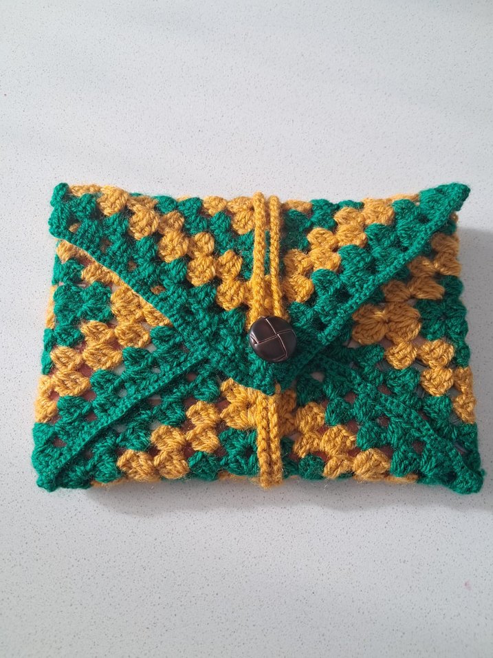 Renkli nakışlı desenlere sahip örgü malzemeden yapılmış, bohem ve rahat tarzı yansıtan kadın clutch çanta, günlük kullanım için uygundur.