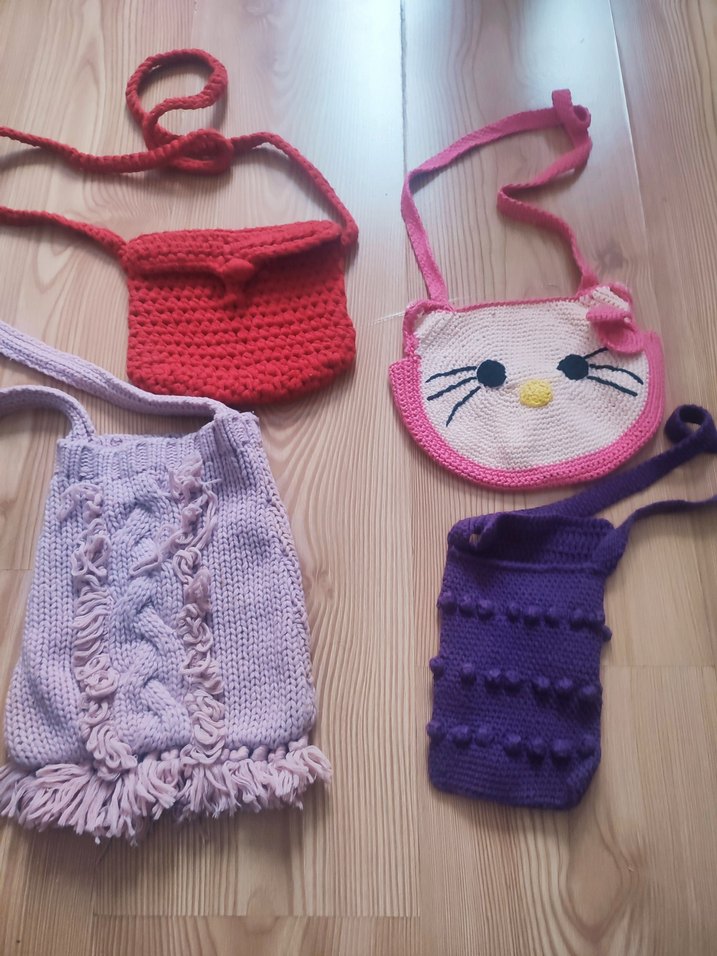 Nakışlı detaylara sahip renkli örgü çantalar, bohem tarzıyla retro ve hippie görünüme uygundur. Her çanta kendine özgü tasarım ve canlı renklere sahiptir.
