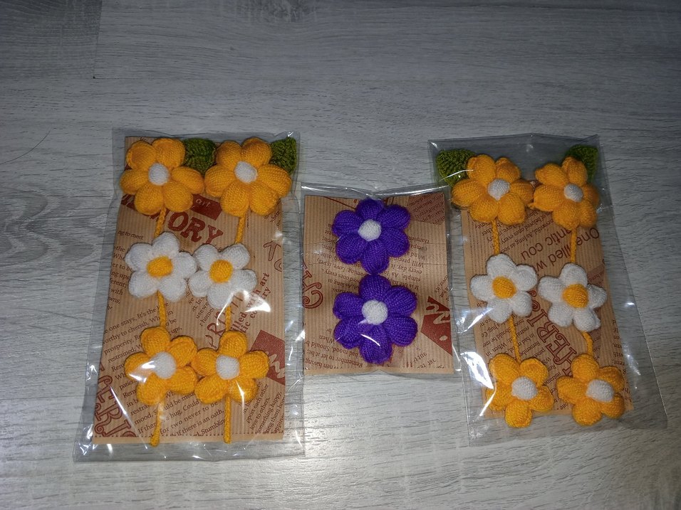 Nakışlı çiçek desenli, renkli örgü saç tokaları. Bohem tarzda, retro ve karşı kültür havası katar. uc adeti 200 tldir