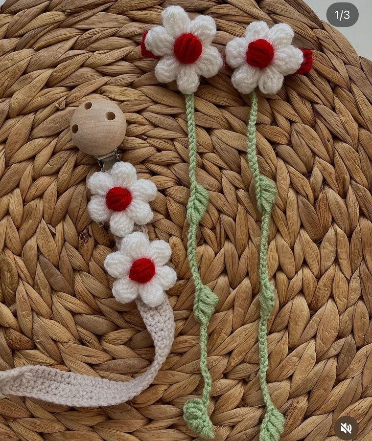 Renkli Nakışlı Örgü Çiçekli Saç Aksesuarları Ve Emzik Bağı