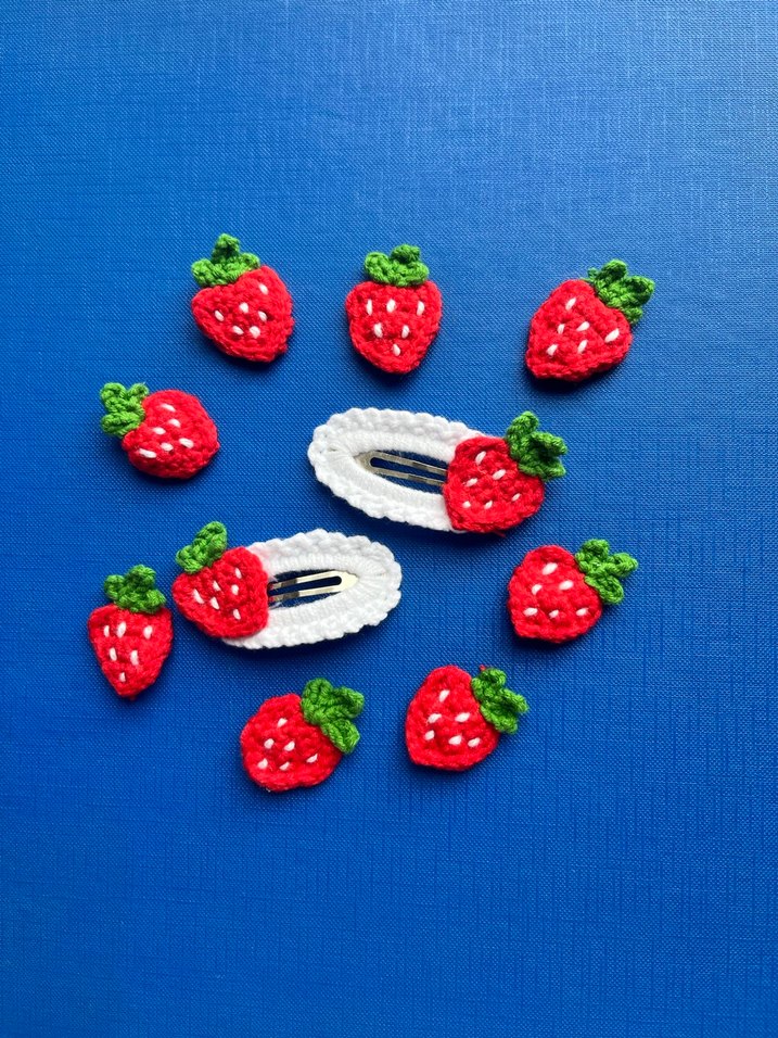 Renkli Nakışlı Örgü Çilekli Çocuk Toka Seti