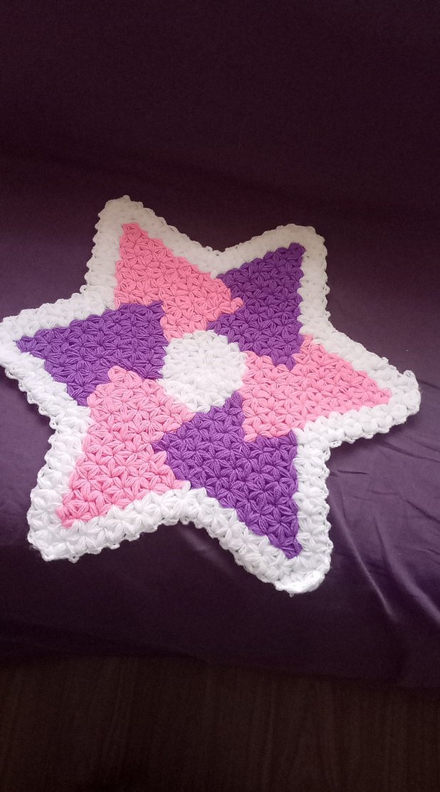 Renkli nakışlı yıldız desenli örgü çocuk battaniyesi, yumuşak ve rahat bir dokunuş sunar.