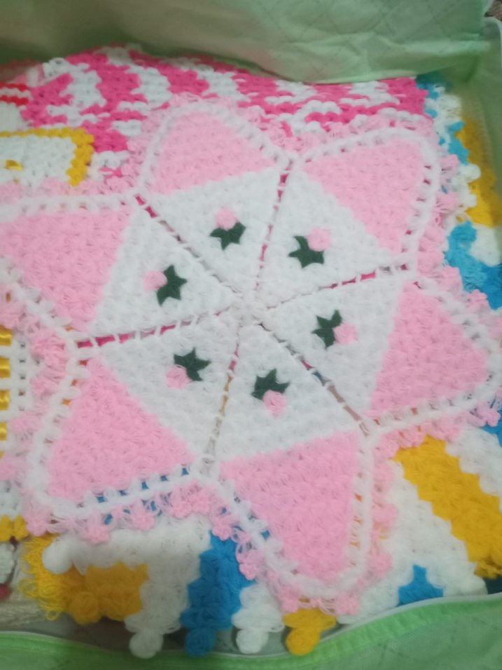 Renkli nakışlı detaylara sahip, yumuşak dokulu örgü çocuk battaniyesidir.