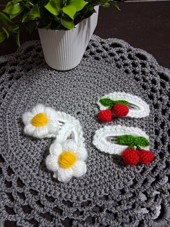 Çiçek ve kiraz nakışlı renkli örgü çocuk saç tokaları, bohem ve retro tarzda. adet fiyatı 30