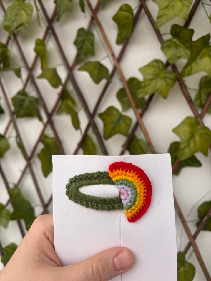 Renkli nakışlı gökkuşağı desenli örgü çocuk toka, bohem tarzı için uygun.