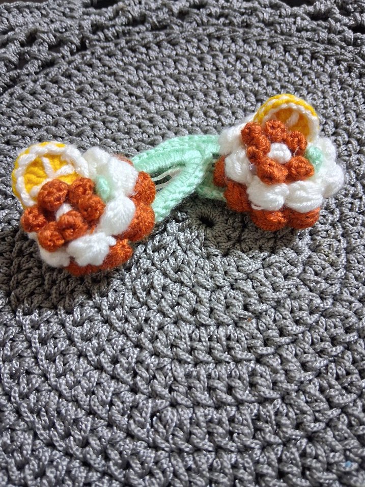 Nakışlı çiçek desenli, renkli örgü çocuk tokaları, bohem tarzıyla dikkat çeker. adet 50