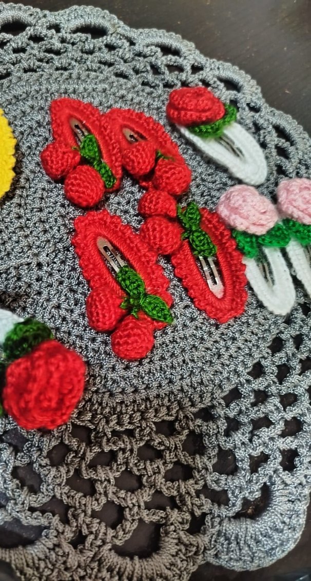 Renkli nakışlı çiçek desenli örgü çocuk tokaları, bohem tarz için uygun. istenilen renk yapılır adet fiyatı 30