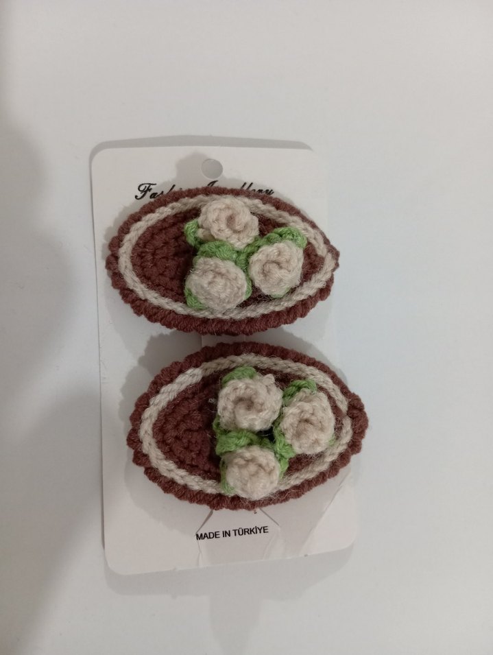 İki adet sarı tabanlı, renkli nakışlı beyaz çiçek detaylı örgü çocuk toka seti. Geleneksel stile sahip, çocuklar için uygun.Hardal sarısı, kahverengi ve bej rengi mevcuttur. 2 adet fiyat.70TL.Renk seçimini mesaj kısmından belirtmelisiniz.