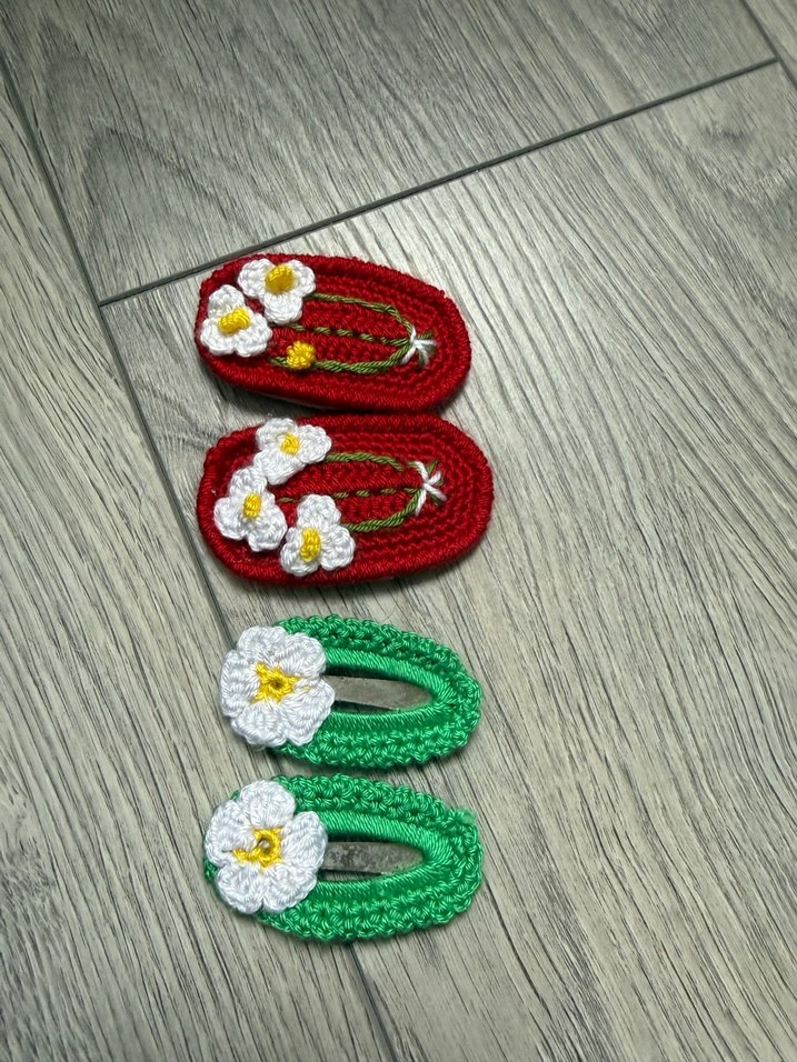 Renkli Nakışlı Örgü Çocuk Toka Seti