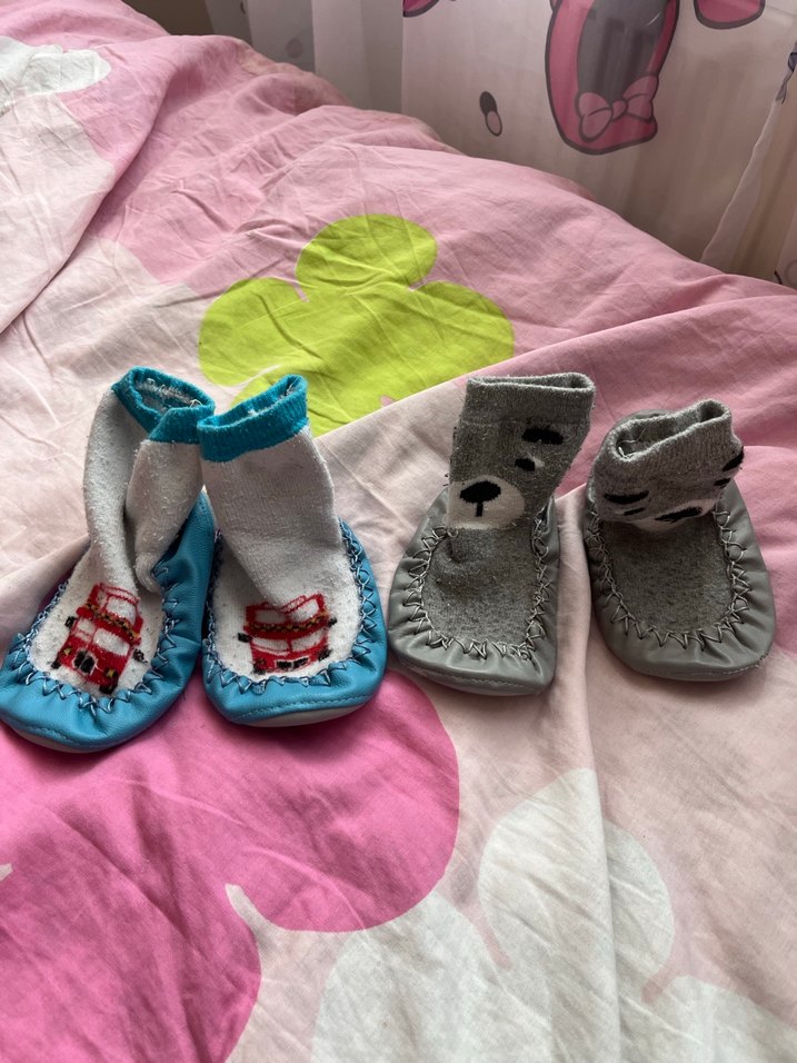 Yumuşak ve sıcak kumaştan örülmüş, renkli nakışlı, bohem tarzda erkek bebek patikleri. Rahat günlük kullanım için uygundur.