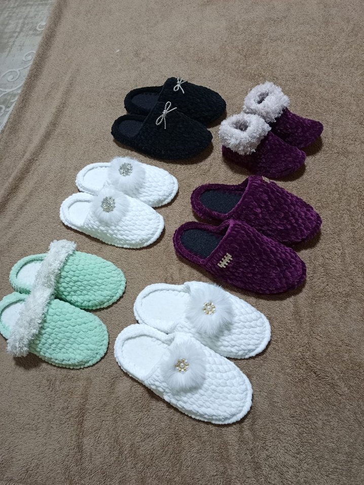 Nakış işlemeli, renkli örgü ev terlikleri, düz tabanlı ve günlük kullanıma uygun rahat bir yapıya sahiptir. Farklı renk seçenekleri mevcuttur. Tane fiyatıdır her numara örülür