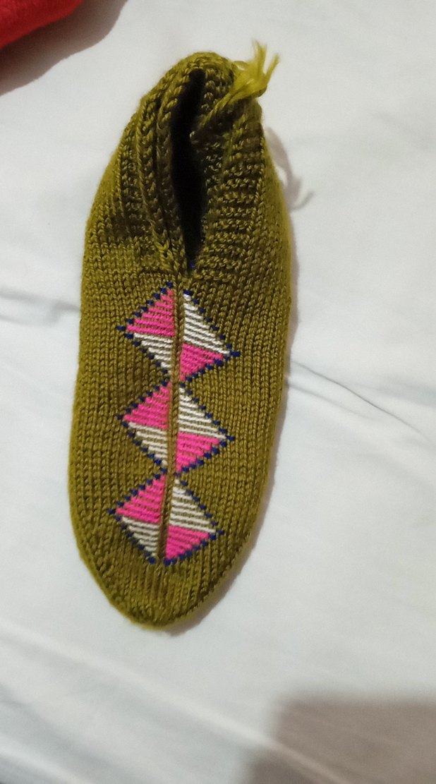 Renkli nakışlı desenlerle süslenmiş örgü kadın patik konforlu ve bohem tarzıyla günlük kullanıma uygundur.