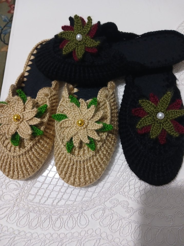Renkli Nakışlı Örgü Kadın Ev Terlikleri