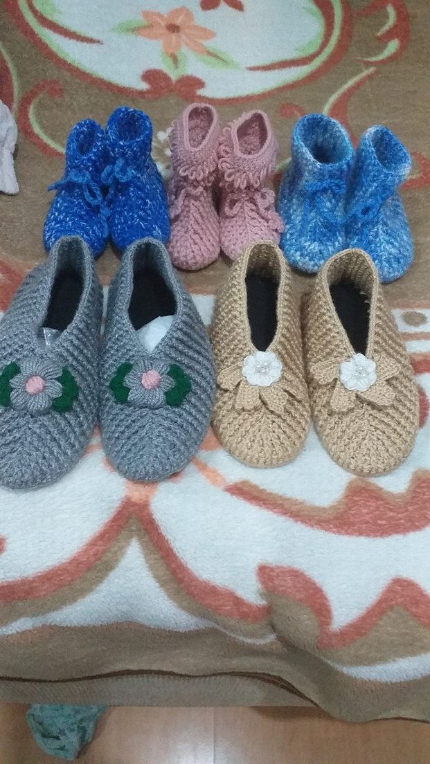 Nakışlı çiçek desenli, keçe tabanlı bayan ve çocuk örgü patik ev botu sipariş alınır bayan 250 çocuk 175