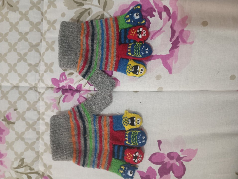 Renkli Nakışlı Örgü Kız Eldiveni