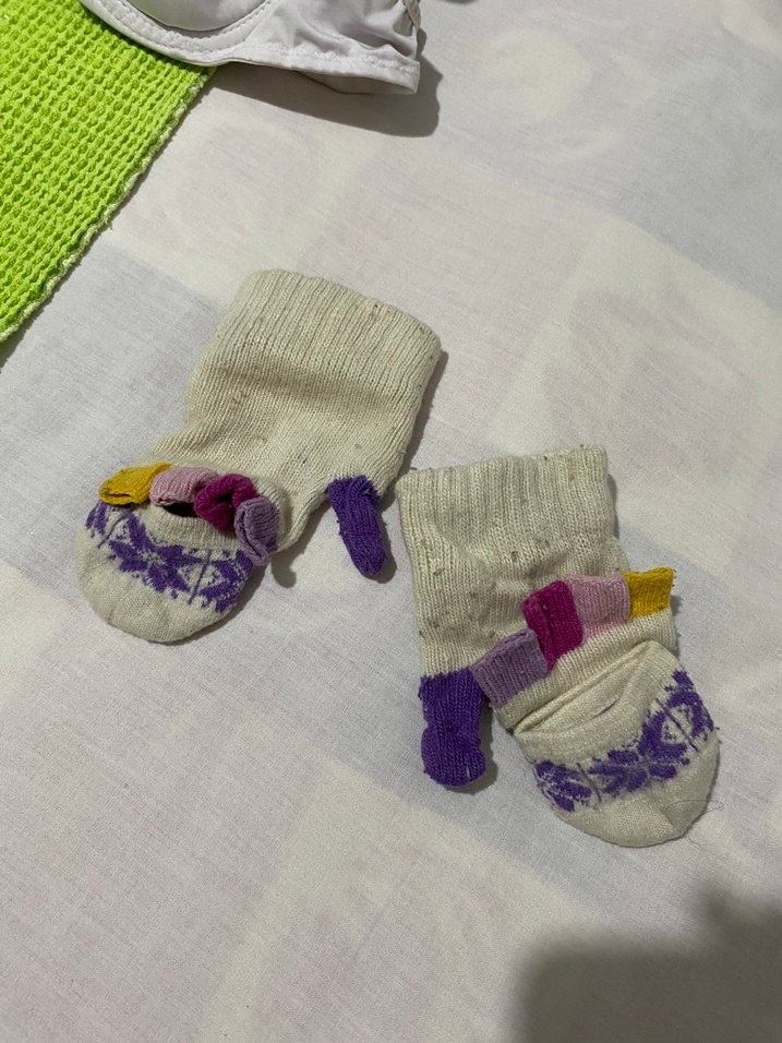Renkli Nakışlı Örgü Kız Eldiveni