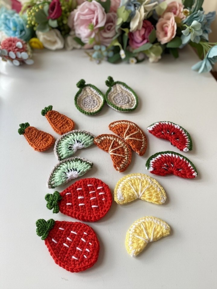 Renkli Nakışlı Örgü meyve Çocuk Saç Tokaları