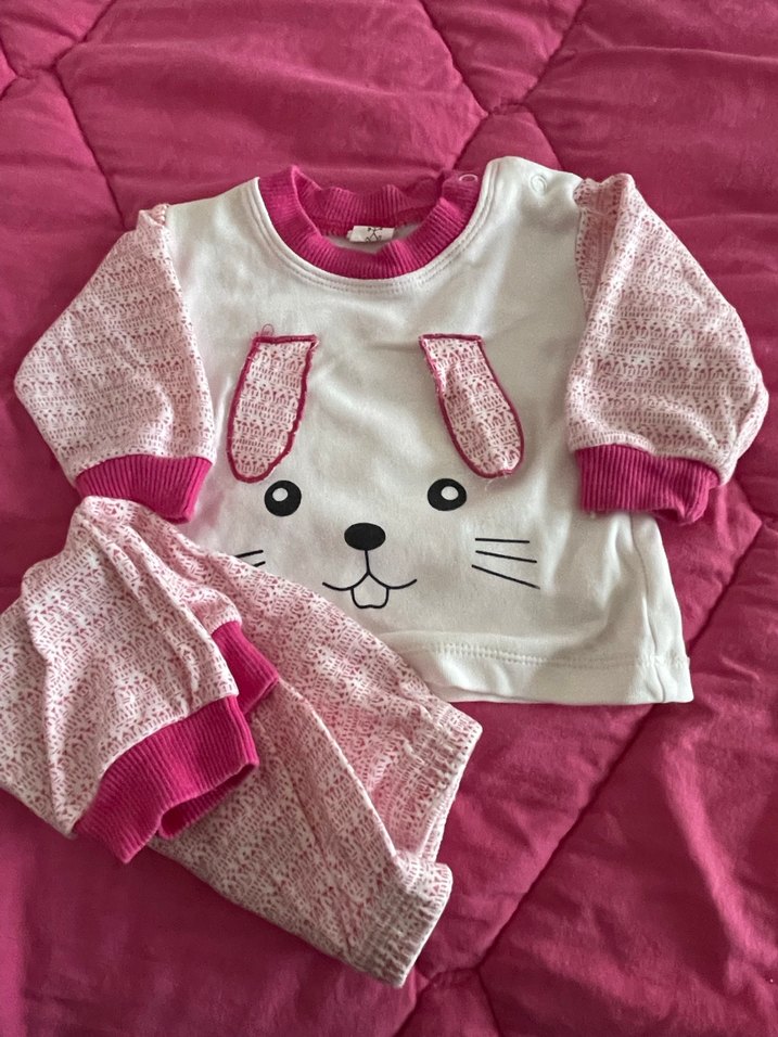 Uzun kollu, örgü dokulu ve renkli nakışlı desenlere sahip bebek kız takımı. Üstünde sevimli hayvan yüzü ve uyumlu pembe pantolon bulunmaktadır.