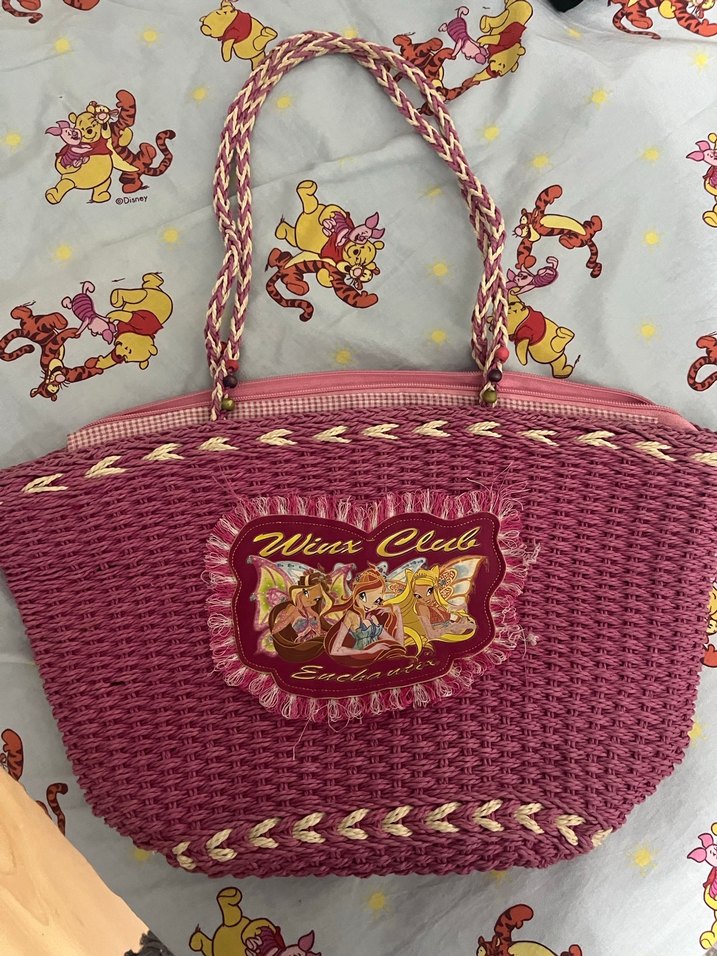 Sentetik kumaştan yapılmış, renkli nakışlı ve fermuarlı pembe kadın çantası. Bohem ve retro tarzı