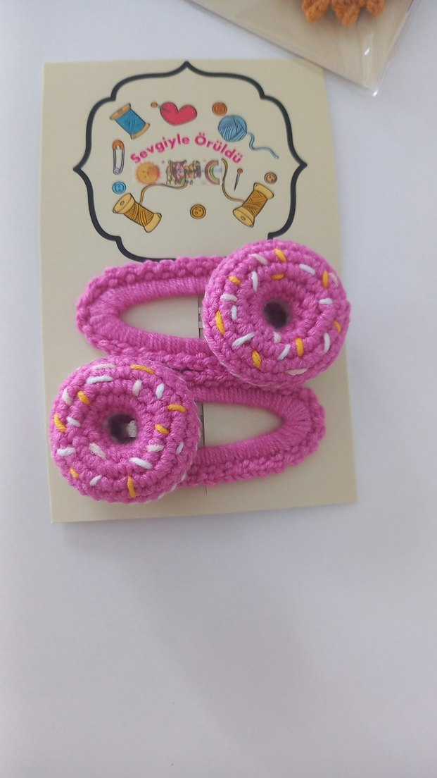 Renkli Nakışlı Pembe Örgü Çocuk Toka