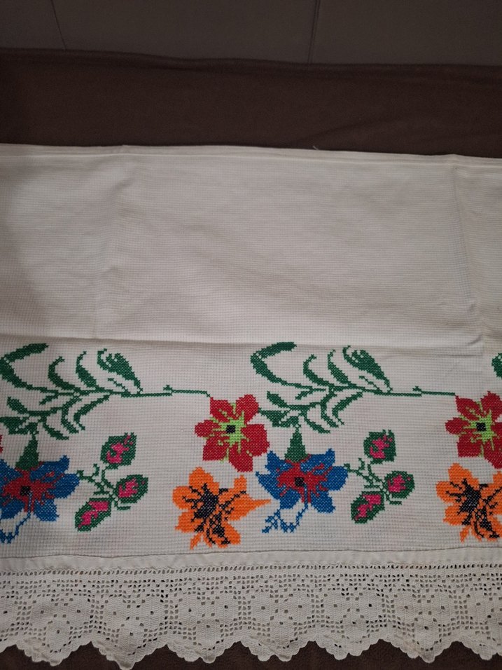 Renkli nakışlı çiçek desenleri ve zarif dantel kenarıyla geleneksel Perde adayı, evlere şıklık katar. 260 cm. × 45 cm. ebatlarındadır..
