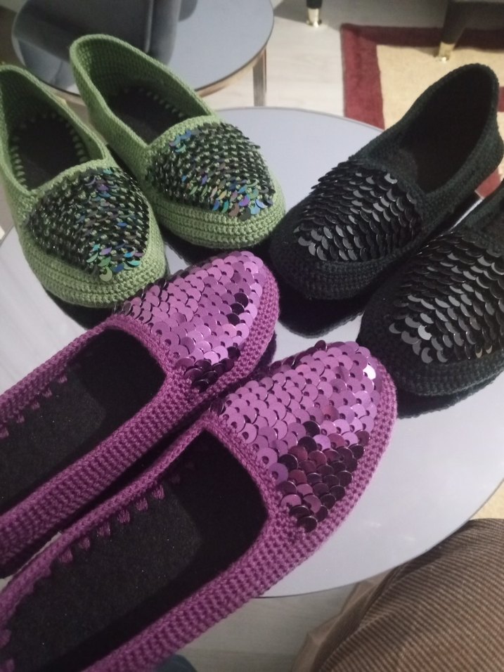 Renkli nakışlı payet detaylı triko kadın terlikler, rahatlık ve şık gotik tarzı bir arada sunar. Günlük kullanım için yüksek topuklu tasarım.