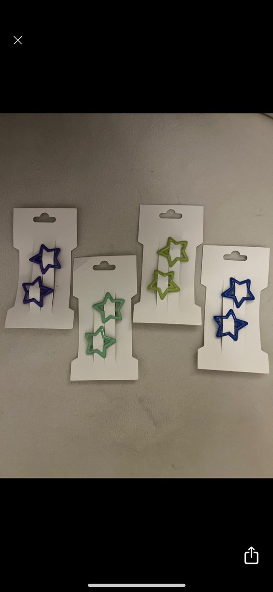 Çocuklar için renkli, nakışlı yıldız şeklinde saç tokası seti. Velcro ile kolay ve sağlam tutuş sağlar.