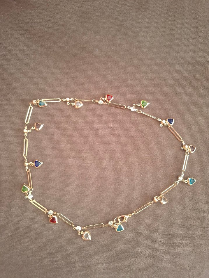 Renkli nakışlı kalp figürlü detaylı zincirli kadın kolye, bohem tarzını yansıtır ve partiler için uygundur.