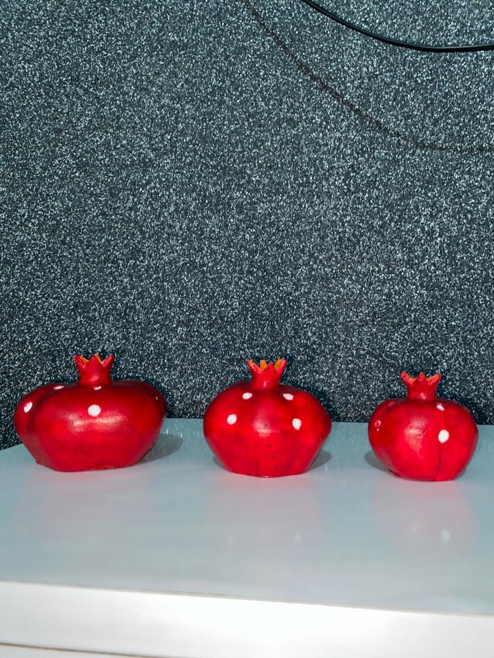 Diger markasına ait, üdekorasyç farklı boyda renkli kırmızı nar figürleri seti, dekorasyon için uygun.