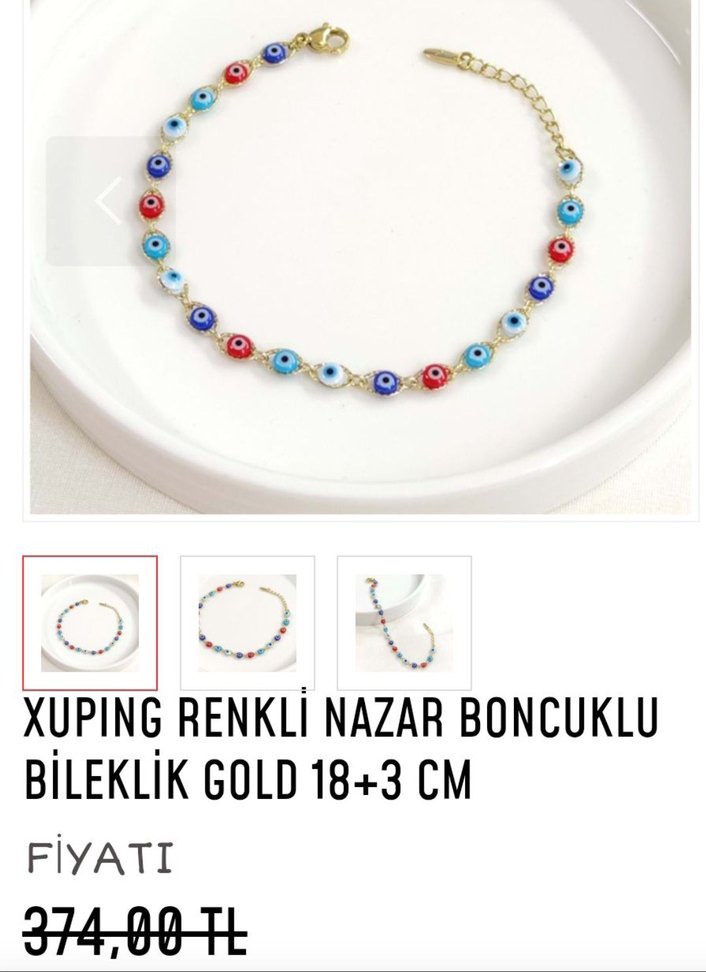 Renkli nazar boncuklu, işleme detaylı, altın renkli zincir ve 18+3 cm ayarlanabilir uzunlukta bohem tarz bileklik. ✨