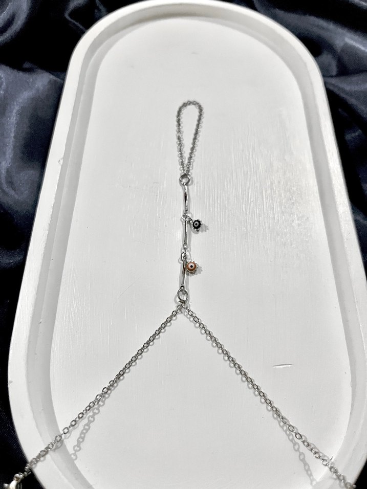 Minik renkli nazar boncuklu gümüş zincirli şahmeran. (1 adet fiyatı)