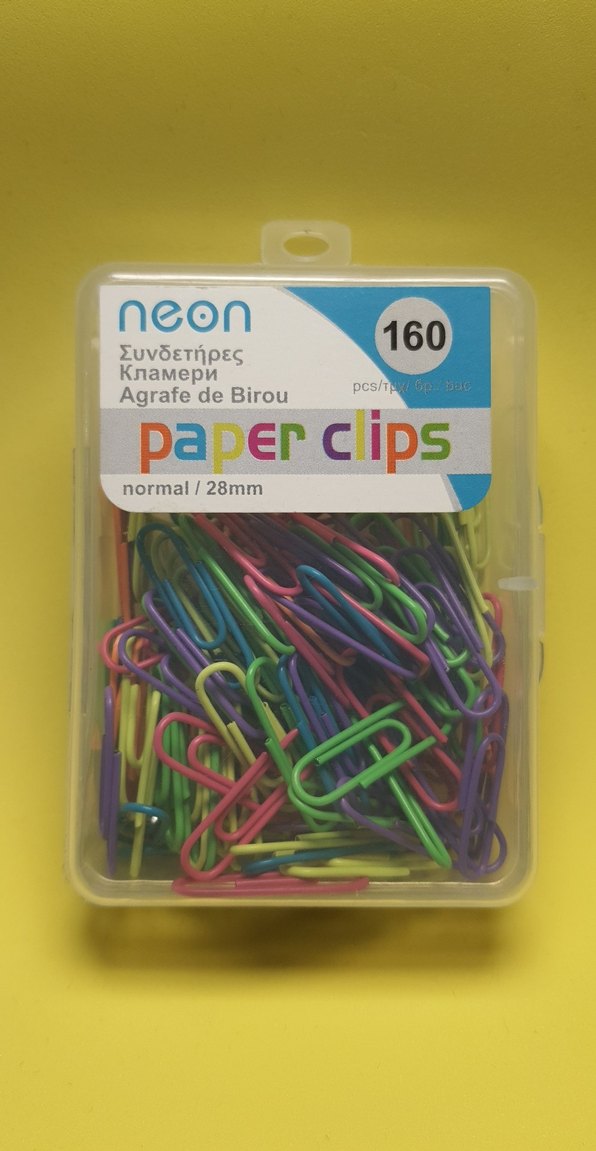 28mm uzunluğunda, neon renklerde 160 adet renkli ataş içeren paket. ️