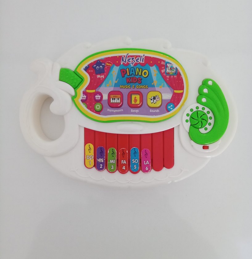 Müzik ve şarkılar içeren, notalı renkli tuşlarıyla Neseli çocuk piyanosu eğitim oyuncağı müzikleri felan çalıyor.sıkıntısı yok