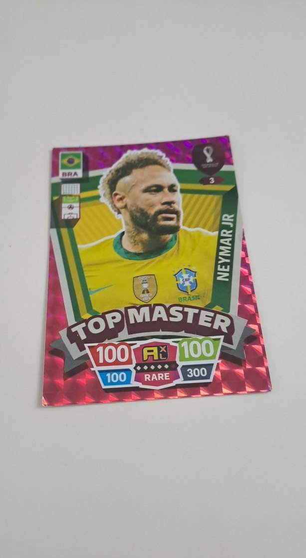 Pop kültür tarzında, athleisure havası taşıyan renkli altın Neymar Jr. rozeti. Üzerinde '100, 300, RARE' işaretleri bulunur. ⚽