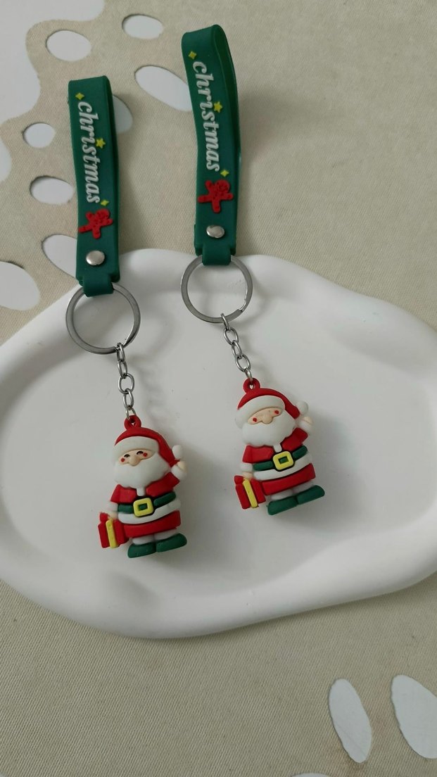 Renkli ve Noel Baba figürlü anahtarlık, üzerinde 'Christmas' yazılı kayış ile bohem ve retro tarzına uygun.
