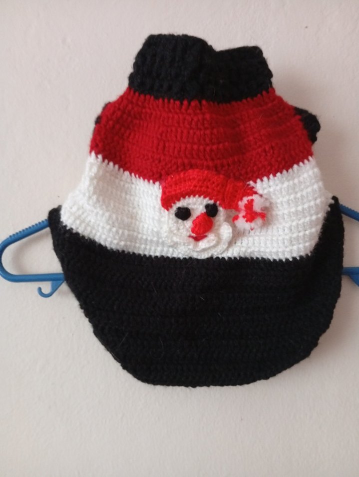Renkli nakış detayları ve yumuşak örme dokusuyla kedi ve ufak ırk köpekler için. Kırmızı, beyaz ve siyah renklerde eğlenceli yılbaşı tasarım.