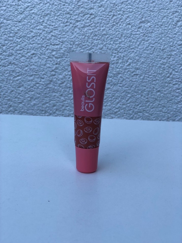 Dudakları parlak ve canlı gösteren renkli pembe dudak parlatıcısı.