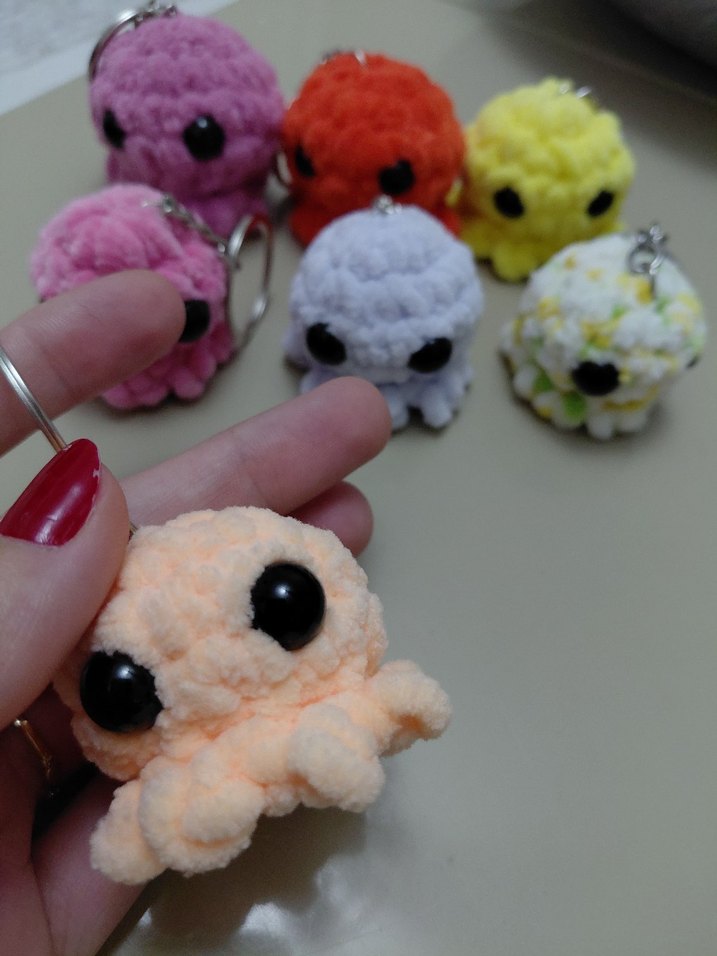 Büyük siyah gözlü, renkli örgü ahtapot anahtarlıklar. 1 adet.