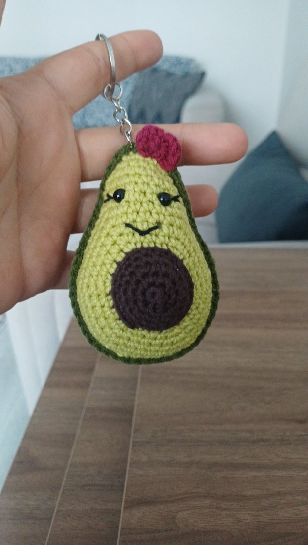 Renkli, örgü avokado şeklinde anahtarlık. Rahat ve bohem tarzda, retro dokunuşlu anahtarlık.