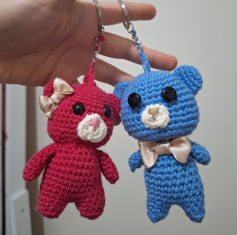 Renkli Örgü Ayıcık Çift Anahtarlıgı