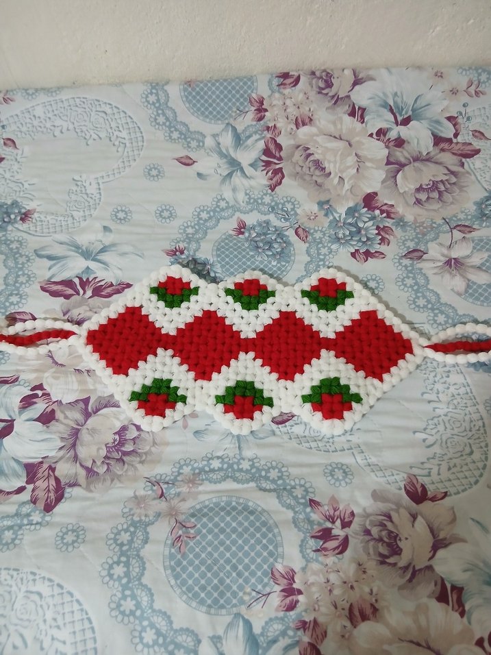 Kırmızı, beyaz ve yeşil el örgüsü renkli banyo süngeri, yumuşak dokulu, nazik temizlik için uygundur.