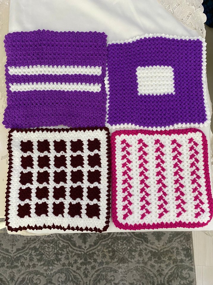 Farklı kare desenlere sahip, koyu renkli çoklu örgü banyo lifleri tanesi 75 TL