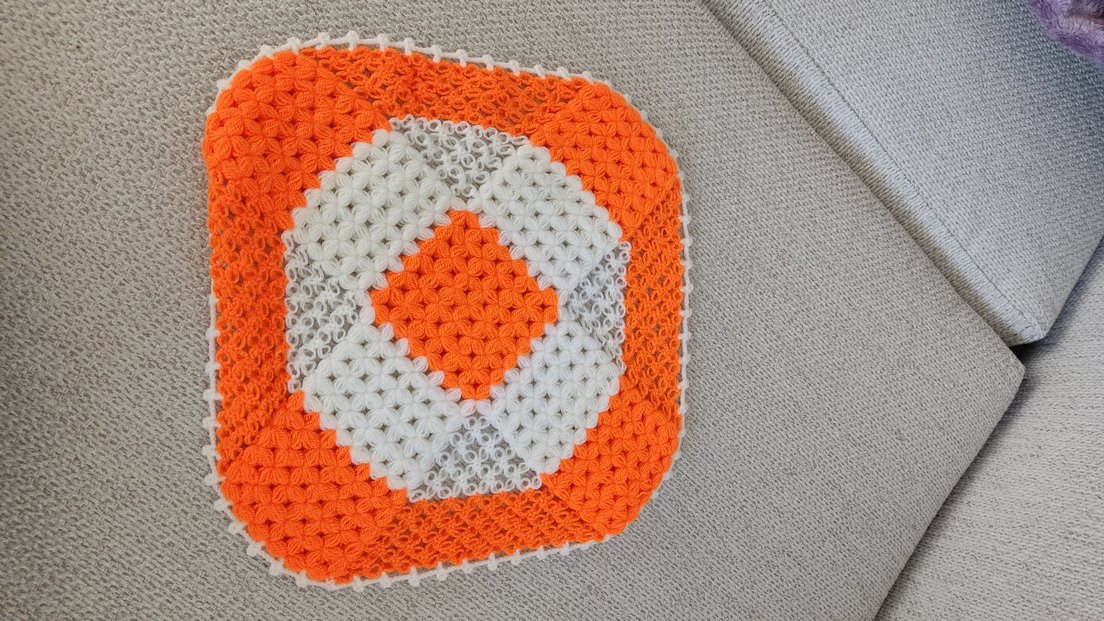 Turuncu ve beyaz renklerde dokulu, örgü desenli renkli banyo lifi. Hiç kullanılmadı. genişliği 29cm