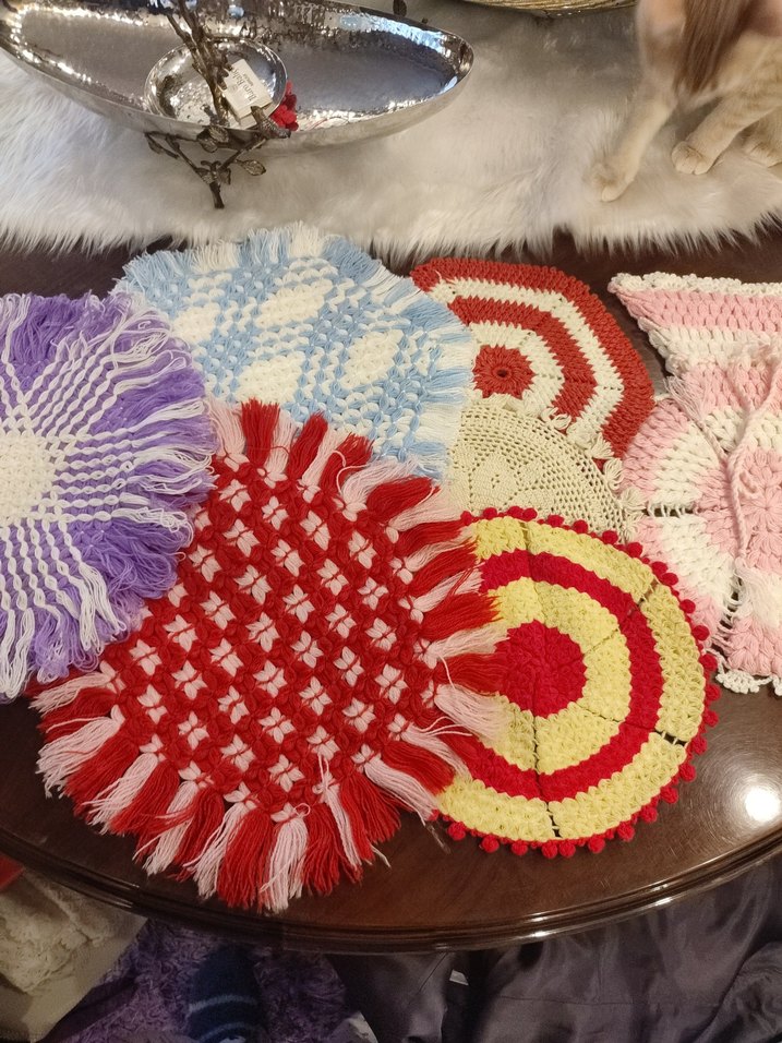 Yumuşak iplikle örülmüş çeşitli desen ve şekillerde renkli 7 adet banyo lifleri ...