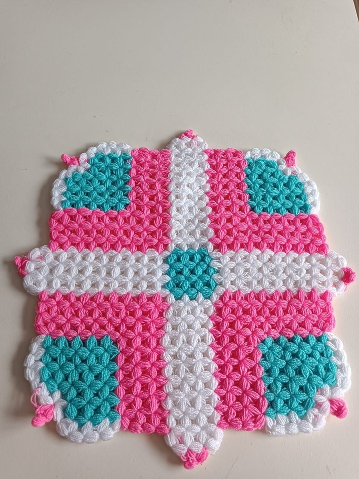 Pembe, beyaz ve turkuaz renklerde dokulu örgü tasarımlı, nazikçe peeling yapan renkli banyo süngeri.