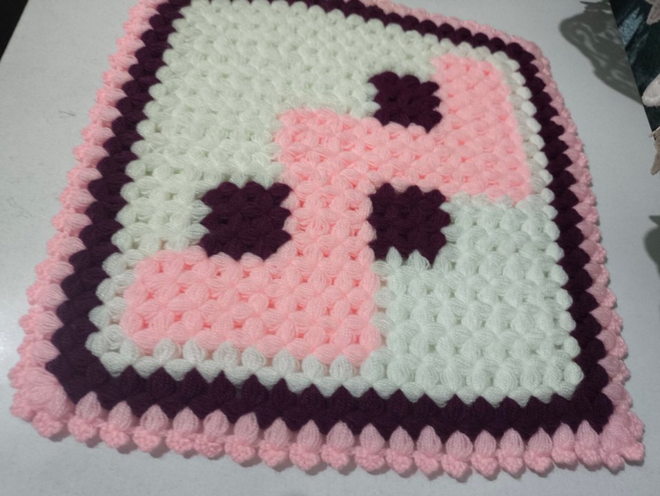 Yumuşak dokulu, çok renkli dekoratif desenli örgü banyo süngeri.