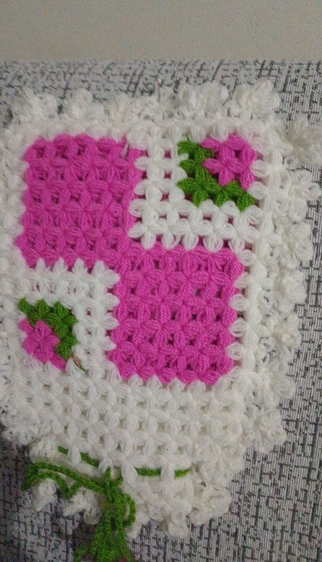 Çiçek desenli, yumuşak dokulu renkli örgü banyo süngeri.