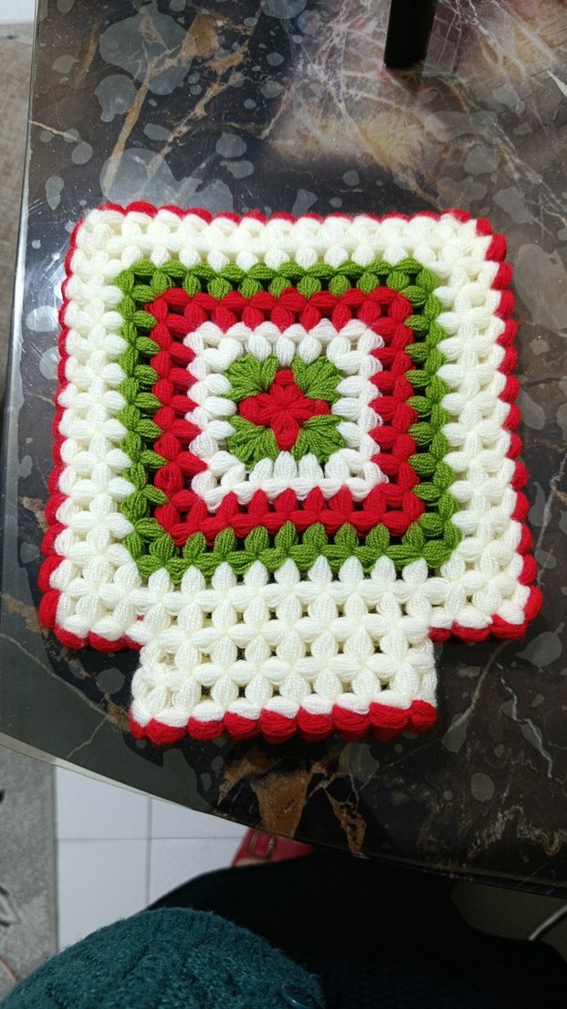 Kırmızı, yeşil ve beyaz renklerde kare desenli örgü banyo süngeri. Yumuşak ve dekoratif kullanım sağlar.